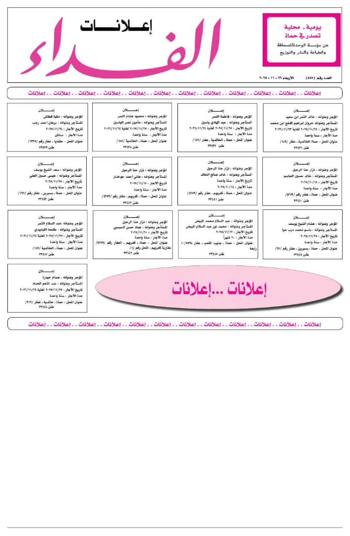 تاريخ الآجار : 24/11/2025 لغاية 23/11/2026