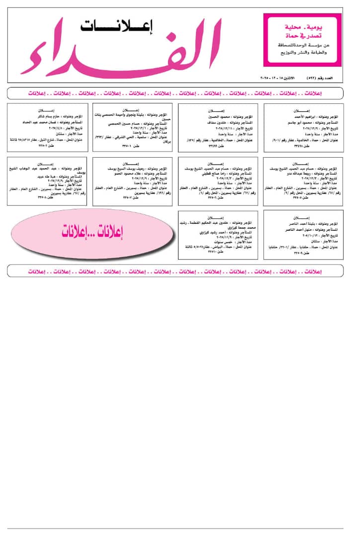 عنوان المحل : حماة ـ شارع النيل ـ عقار 8315/25 ثالثة