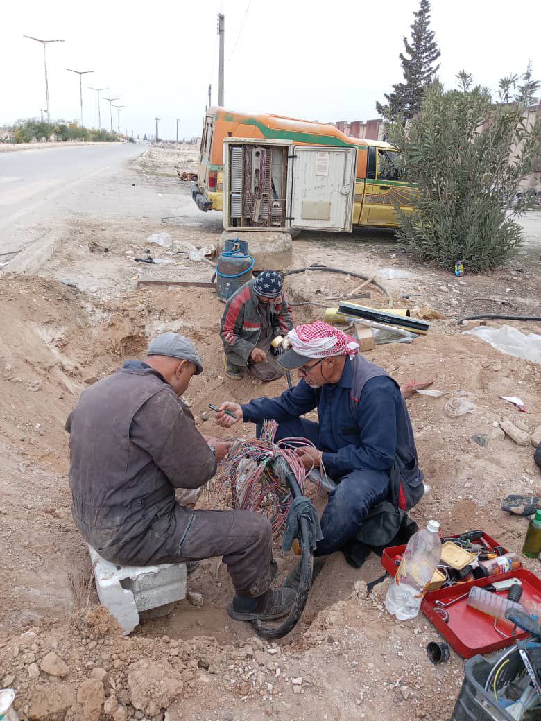 وفي سياق متصل، نفذت ورشات الصيانة في مدينة سلمية أعمالاً شاملة شملت تغيير مواقع الكبائن، وإجراء حفريات حول غرف التفتيش، وتبديل القوائم الرئيسية، إلى جانب تنفيذ وصلة رئيسية بسعة 300 خط وأخرى فرعية بسعة 150 خط، واستمرت الأعمال لمدة يومين متتاليين حتى الساعة الخامسة مساءً.