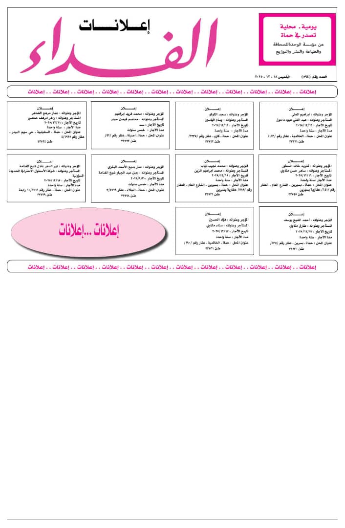 تاريخ الآجار : 17/12/2025