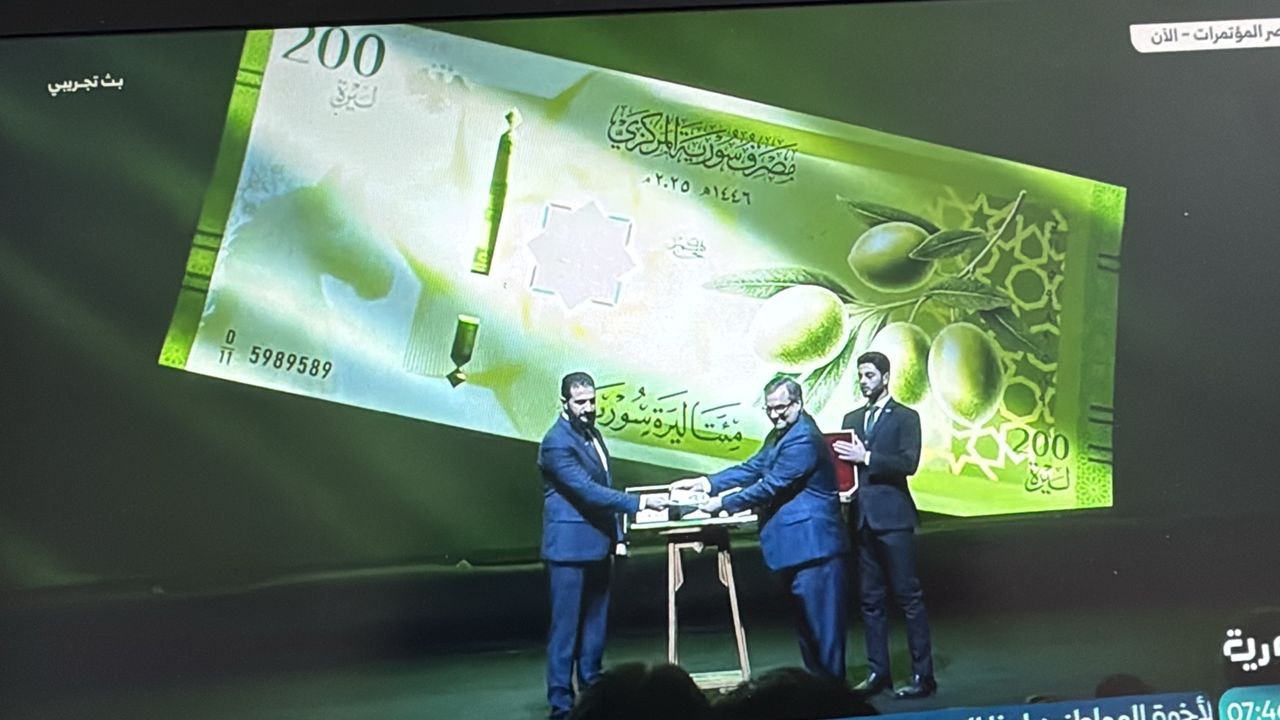 كشف السيد الرئيس أحمد الشرع وحاكم مصرف سوريا المركزي عبد القادر حصرية، العملة السّورية الجديدة في حفلٍ رسمي بقصر المؤتمرات بدمشق.