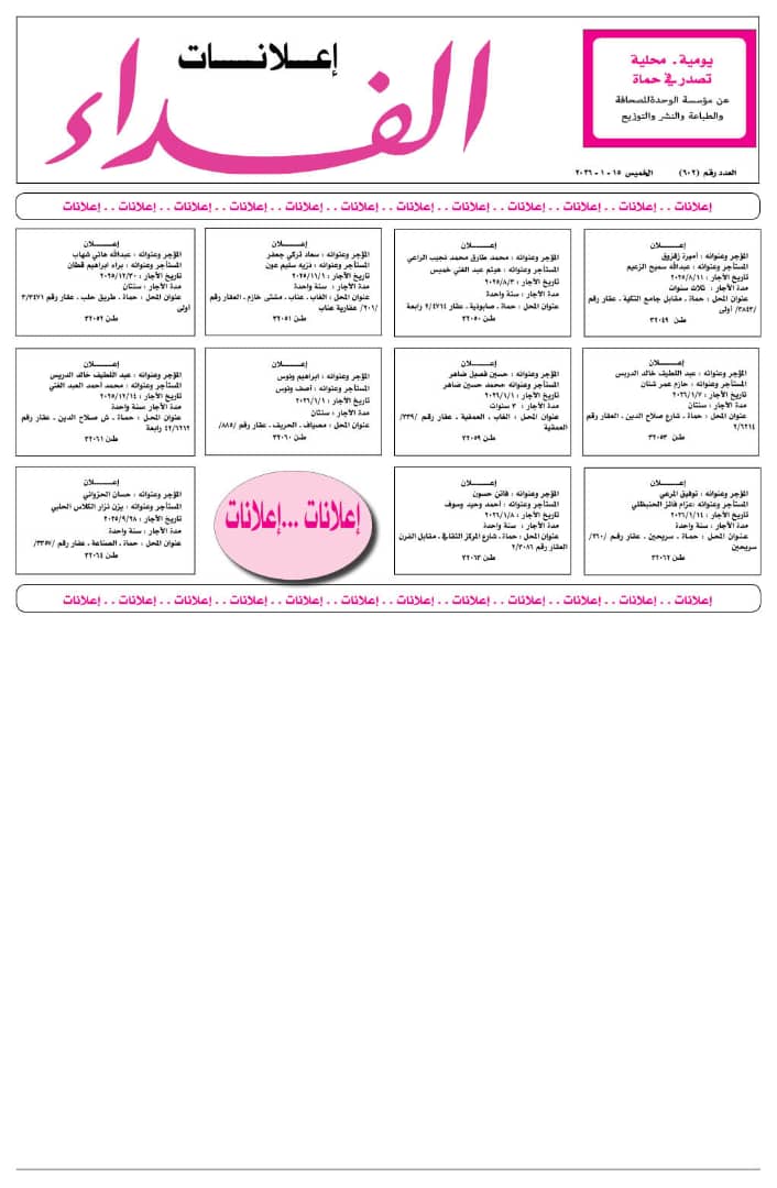 عنوان المحل : حماة ـ شارع صلاح الدين ـ العقار رقم 6214/2