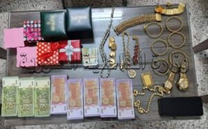 ادعى أحد المواطنين إلى فرع الأمن الجنائي في حماة بتعرض منزله في حي ضاحية أبي الفداء لسرقة مصاغ ذهبي ومبالغ مالية وأجهزة خليوية، وبعد التحري وجمع المعلومات تبين أن السارق يدعى (محمد بلال. ح ) مقيم في قرية معر شحور وقد تم إلقاء القبض عليه من قبل مخفر شرطة القرية لوجود ادعاء عليه بسرقة منزل في القرية والعثور في منزله على المسروقات العائدة للمدعي.