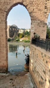 كل ذلك ممكن السيطرة عليه ورؤيته بما اننا تعودنا على هذه المناظروالروائح ولكن المشاهد اليوم كانت لاطفال وشبان يصطادون الأسماك من النهر وبعضهم يتسلق الناعورة وهذه الأفعال لهؤلاء الشبان مضرة وخطرة جدا ولايوجد أحد يردعهم عدا عن إصاباتهم بحوادث أو أمراض خطيرة .