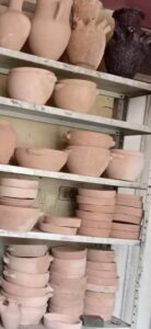 بعد انتهاء الشكل نضع القطع المصنعة في فرن لتعرض الى درجة حرارة 600درجة مطوية لمده ممكن من 4-5ساعات