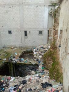 ونقلا عن الأهالي ان هذا البناء تم ايقاف العمل به منذ أكثر من ثلاث سنوات من قبل مجلس المدينة وقد أصبح مكباً للقمامة عدا عن الخوف من الحوادث الخطيرة للبناء لعدم وجود حائط يفصل المنازل عنه علما أن الأهالي قد قدموا شكوى إلى الجهات المعنية دون استجابة أو حل.
