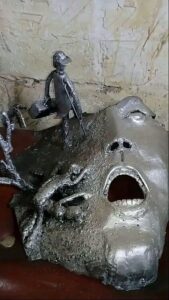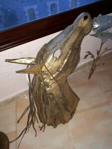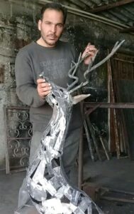 قال لي : من لا يملك هدفا في حياته ، لا يمكنه أن يقدم أية فائدة كانت … ، فيبدو أن كلمة السر لدى اشتيان هي السعي لتحقيق هدف خاص به ، مغلفة بالحب و الصبر و الإتقان ، و إلا لما استطاع تكوين لوحات ملفتة لناظرها ، من الحديد القاسي العنيد ، حيث تمر قطع الحديد تحت يديه بمراحل عدة ، حتى تكونا لغزا جميلا ، يجب النظر إليه بإحساس و حب لنفك رموزه ، فاشتيان متلصق بالبيئة ، مكونات أعمله من توالف البيئة ، و بداية فكرة العمل عنده ، تكون من مشاهدة حية من المجتمع ، شارك بمعارض عدة ، ولم يستطع تلبية دعوات أخرى بسبب تكاليف النقل بين المحافظات ، و خوفه على ما انتجت يداه من قطع فنية ، خاصة بأنه ( انفرد ) تماما بنوع فنه الذي شكل من خلاله طيورا كادت أن تغرد ، و رفض الاضطهاد بأشكاله كافة ، و انعجن هو و حديده بمكونات طبيعية جميلة ، و اللافت بالأمر هو دقة التفاصيل بكل مجسم صنعه ، حتى أن المشاهد يستغرب كيف تقبل المعدن هذه الطواعية ، لم تغب فلسطين عن أفكاره ، و لا أوجاع الأرض ، و لا أهمية و تعب العائلة السورية ، إسماعيل اشتيان انطق الحديد ، فهل من سامع ؟