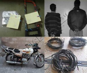 بناءً على المعلومات والشكاوي الواردة لشرطة ناحية وادي العيون التابعة لمنطقة مصياف بريف حماة بإقدام مجهولين على قص وسرقة الأكبال الكهربائية بقصد حـ.رقها وبيعها ، ومن خلال المتابعة المستمرة والتحري تمكنت شرطة ناحية وادي العيون من إلقاء القبض على الفاعلَين وهما (ابراهيم . س) و(أحمد . س) ومصادرة كمية من الأسلاك الكهربائية من إحدى الأماكن التي قاما بسرقتها وضبط منشـ.ار حديد يدوي كان بحوزتهما وبالتحقيق معهما اعترفا بإقدامهما على قص عدة كابلات نحاسية لعدد من المدارس والمزارع في بلدة وادي العيون وبعض القرى المجاورة وقيامهما بحـ.رقها لاستخراج مادة النحاس التي بداخلها وبيعها للمركبات الجوالة وتقاسم ثمنها فيما بينهما ، تم حجز الدراجة النـ.ارية التي كانت بحوزتهما ،٥ واتخاذ الاجراء اللازم بحقهما وتقديمهما للقضاء المختص أصولاً.