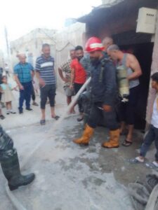 بين قائد فوج إطفاء حماة العميد ثائر الحسن أنه تم الابلاغ اليوم عن حريق منزل في حي الورور جانب دوار الاسكان ويعود سببه الى ماس كهربائي والحمد لله تمت السيطرة عليه ولا يوجد خسائر بشرية فقط اضرار مادية والآن فوج الإطفاء يعمل على تبريد المكان.