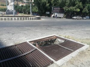 تنتشر الحفر والريكارات بلا اغطية في العديد من شوارع وأزقة مدينة مصياف وهذه الصورتين عند دوار الوراقة-مدخل مدينة مصياف بحاجة الى اصلاحها وإزالة الخطر المحدق بالمواطنين وآلياتهم