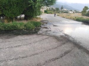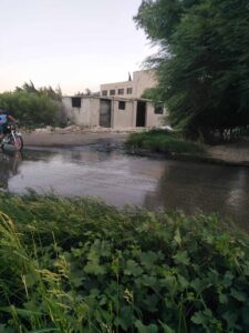 من اهالي قريةالرميلة وساقية نجم حول سيلان مياه الصرف الصحي على الطريق جانب المدرسة .