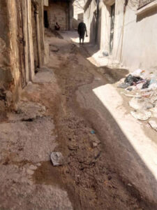 وأوصلنا شكوى هذا الحي الى رئيس مجلس المدينة بحماة عند لقائنا به تلك الفترة وشرح لنا اسباب مشكلات هذا الحي وقال: إن الحي يعاني من مشكلة اهتراء في شبكة الصرف الصحي وعدم إجراء اي استبدال لها إلا في مواقع محدودة جداً وهو ما كان له السبب الرئيسي بتصدع المنازل ضمن الحي وأنه لابد من معالجة المشكلة.. وأن أهم الإجراءات المتخذة هي دراسة للصرف الصحي والمياه.