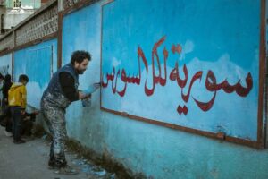 عمل عدد من شباب مصياف الحر على انجاز رسومات جدارية على مدخل مدينة مصياف الشمالي وسور مدرسة المأمون العمل من إنجاز فريقيّ “المشروع السوري المدني” و”ريشة وطن” بالتعاون مع “بيت سوري للفنون”.