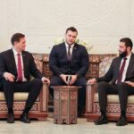 لقاء قائد الإدارة السورية الجديدة السيد أحمد الشرع ورئيس جهاز الاستخبارات العامة السيد أنس خطاب مع وفد جمهورية بيلاروسيا برئاسة السيد رجينكوف مكسيم فلاديمير وفيتش وزير الخارجية البيلاروسي.