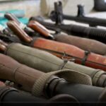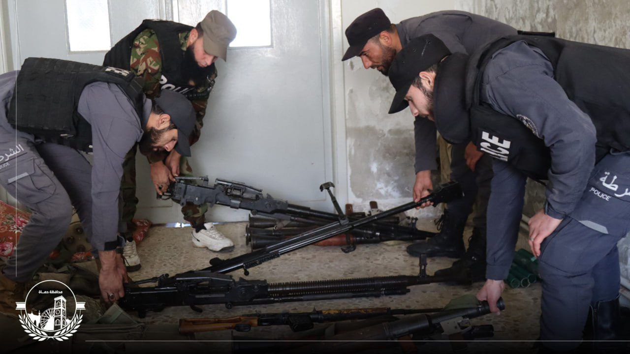 جانب من عمليات تسليم الأسلحة والعتاد العسكري لوحدات وزارة الداخلية في قرية بشنين، بالتنسيق مع مدير منطقة مصياف، السيد محمد طعمة.