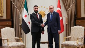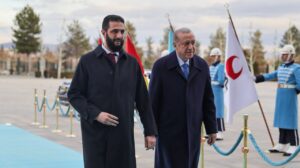 الرئيس أردوغان يستقبل الرئيس الشرع آخر تحديث شباط 4, 2025 شارك الفداء_ استقبل رئيس الجمهورية التركية رجب طيب أردوغان فخامة رئيس الجمهورية العربية السورية السيد أحمد الشرع والسيد أسعد الشيباني وزير الخارجية في المجمع الرئاسي بالعاصمة التركية أنقرة. شارك FacebookWhatsAppFacebook MessengerTelegramTwitter