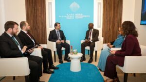 الوزير الشيباني يشارك بالقمة العالمية للحكومات في دبي في شباط 11, 2025 شارك الفداء_ شارك وزير الخارجية والمغتربين أسعد الشيباني اليوم في القمة العالمية للحكومات والتي تقام في دبي بالإمارات العربية المتحدة. والتقى الوزير الشيباني في اجتماع جانبي مع أوسمان ديون نائب رئيس البنك الدولي لمنطقة الشرق الأوسط وشمال أفريقيا شارك FacebookWhatsAppFacebook MessengerTelegramTwitter
