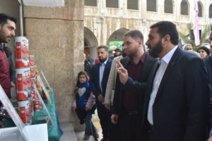 برفقة محافظ حماة عبدالرحمن السهيان “سوق العيلة”في خان رستم باشا الأثري، الذي يقام بمناسة قرب حلول شهر رمضان المبارك، بمشاركة 50 شركة تجارية وصناعية، تعنى بإنتاج المواد الغذائية والمنظفات ،والتي تطرح منتجاتها بأسعار مخفضة مقارنة مع مثيلاتها في الأسواق.