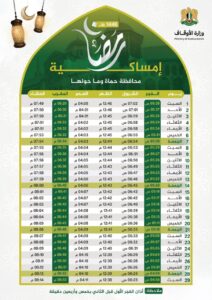 إمساكيات شهر رمضان لعام 1446 هـ – 2025م لمحافظة حماه وريفها “مبارك عليكم شهر رمضان المبارك، أعاده الله عليكم بالخير والبركات وكل عام عام وانتم بخير”. في شباط 26, 2025 شارك شارك FacebookWhatsAppFacebook MessengerTelegramTwitter