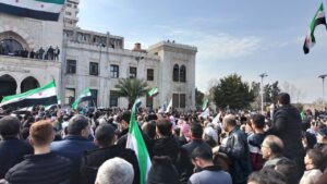 وندد المشاركون في المظاهرة ما ارتكبته ميليشيات النظام البائد من جرائم بحق قوات الأمن والجيش واعتداءاتهم على الممتلكات العامة والخاصة، معربين عن استعدادهم المطلق للوقوف مع قوات الأمن والجيش وعناصر وزارة الدفاع في مواجهة ومجابهة هذه المجموعات الإرهابية المسلحة المارقة، واستعدادهم التام لبذل الغالي والنفيس فداء للشهداء الذين قدموا أرواحهم ودماءهم في سبيل عزة سورية وتحقيق النصر المجيد على النظام المخلوع .