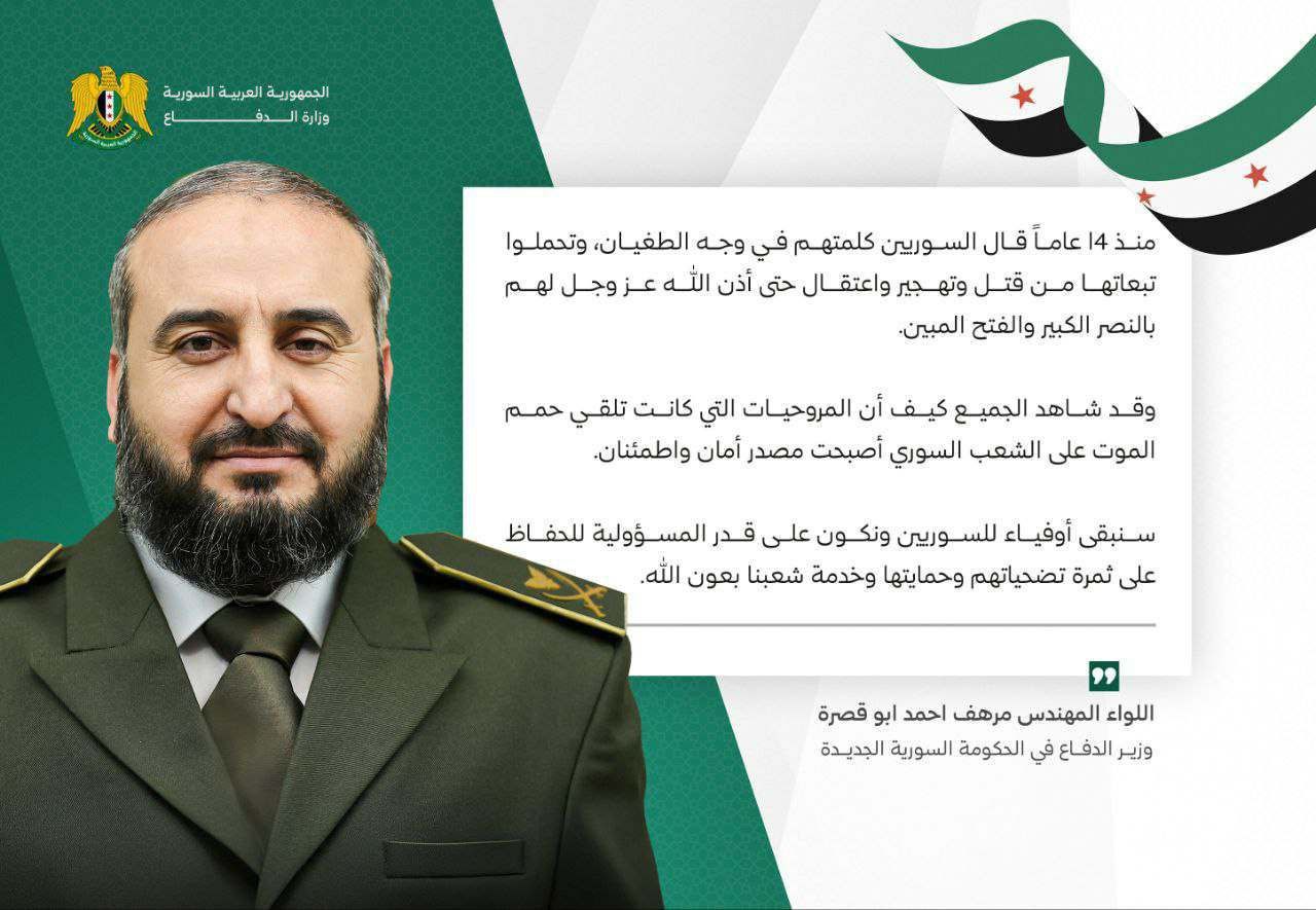 وزير الدفاع: بعد 14 عاما سنبقى أوفياء وعلى قدر المسؤولية للحفاظ على التضحيات وخدمة شعبنا بعون الله في آذار 16, 2025 شارك الفداء _ وزير الدفاع: بعد 14 عاما سنبقى أوفياء وعلى قدر المسؤولية للحفاظ على التضحيات وخدمة شعبنا بعون الله. شارك FacebookWhatsAppFacebook MessengerTelegramTwitter