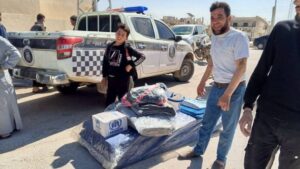 توزيع سلل طوارىء على المهجرين العائدين إلى مدينتهم مورك