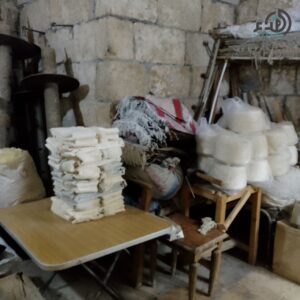 وأضاف: أصنع البشاكير والمناشف والبرانص وغيرها، وأجلب الخيطان القطنية من شركة حمص.