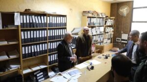 مدير منطقة مصياف السيد محمد عبدالله طعمة وقائد الشرطة الرائد أحمد عجان يزور المحكمة المدنية في المنطقة حيث التقيا بموظفيها واستمعا إلى التحديات التي تواجههم في العمل القضائي
