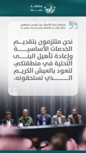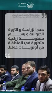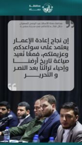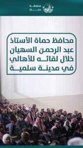 محافظ حماة عبد الرحمن السهيان خلال لقائه بالأهالي في مدينة سلمية في نيسان 18, 2025 شارك شارك FacebookWhatsAppFacebook MessengerTelegramTwitter
