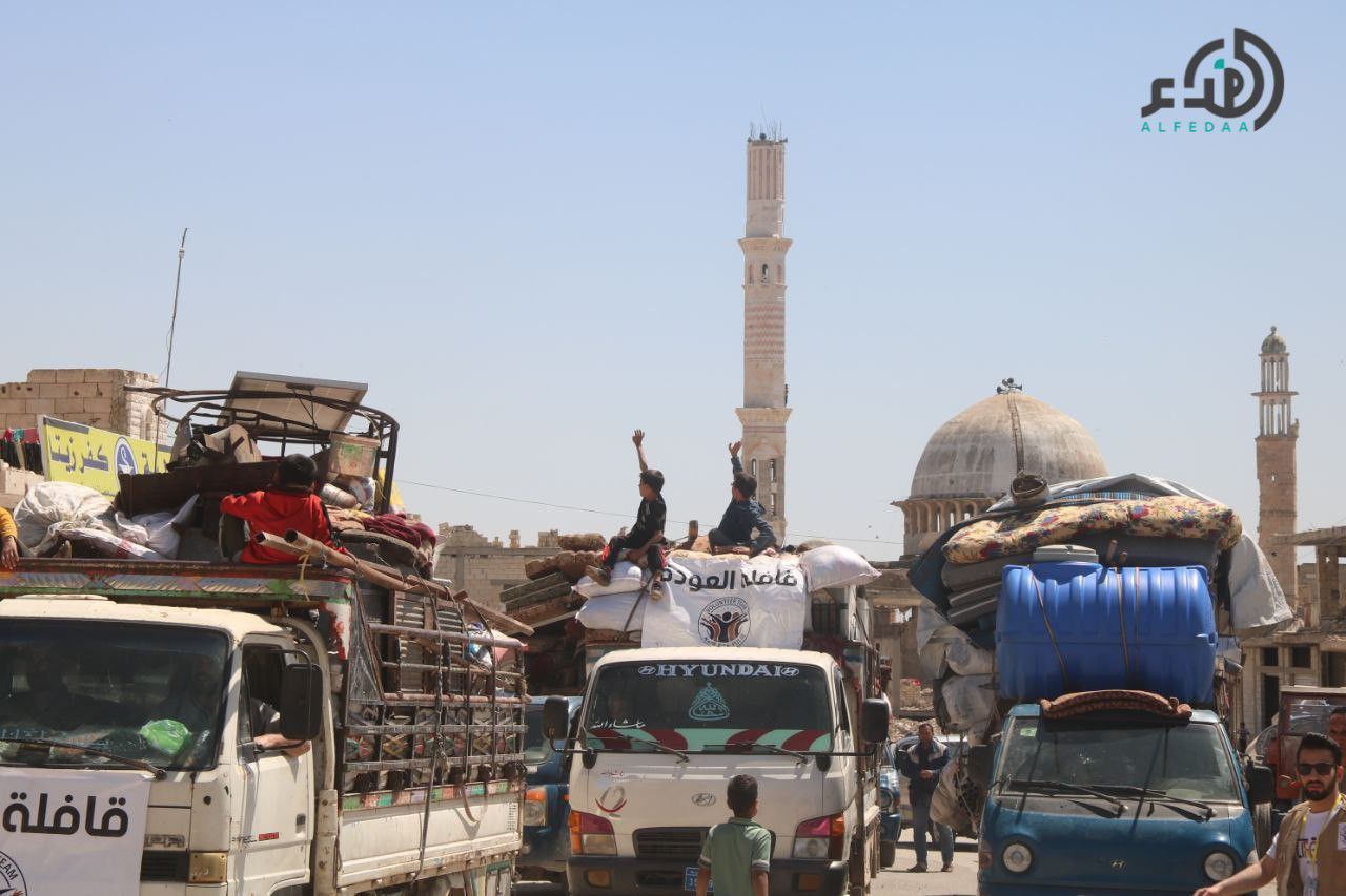 مراسل الفداء: بالصور من عودة أهالي كفرزيتا ضمن قافلة العودة الثانية من مخيمات العز، والكرامة في الشمال السوري.