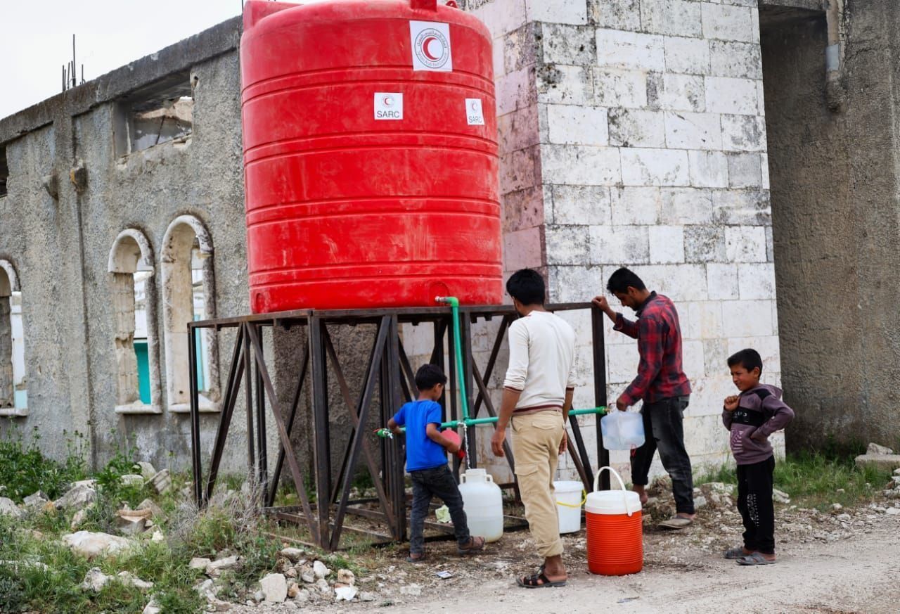 في استجابة طارئة لعودة الأهالي إلى قرية الحويجة بريف حماة الشمالي الغربي، تركيب 5 خزانات مياه سعة 5000 ليتر مع قواعد، ومناهل شرب، كحل مؤقت لتأمين مياه شرب آمنة للعائلات، مع إرسال صهريج ماء لتعبئة الخزانات بشكل دوري ،وتوزيع بيدونات مياه، وذلك بدعم من الاتحاد الدولي لجمعيات الصليب والهلال الأحمر.