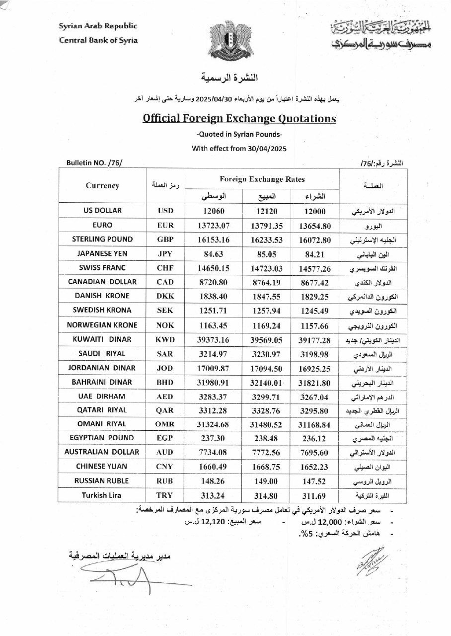 نشرة أسعار الصرف والمصارف وشركات الصرافة اليوم آخر تحديث نيسان 30, 2025 شارك الفداء_ نشرة أسعار الصرف والمصارف وشركات الصرافة اليوم. شارك FacebookWhatsAppFacebook MessengerTelegramTwitter